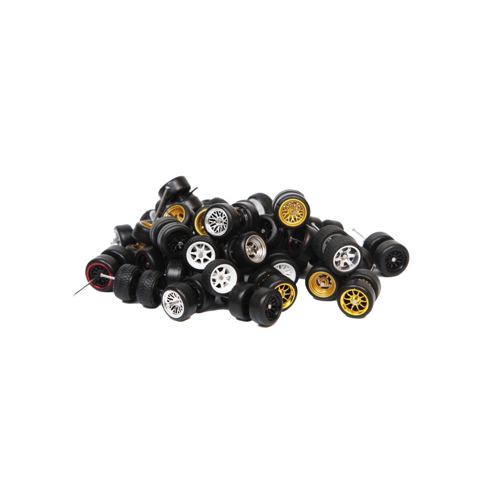 Pack includes 3 Mystery sets of Real Rider style wheels,tires, and axles!